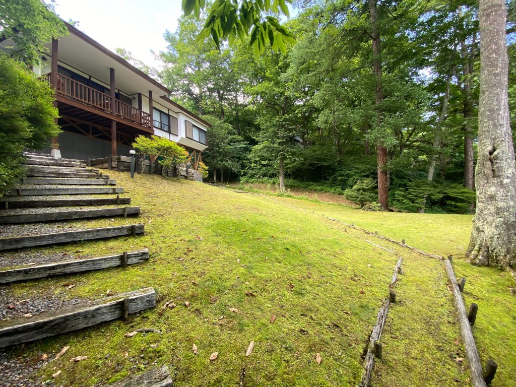南側に緩やかな斜面が広がる土地の上部に位置するこの中古建物は、築年数が経過していますが、非常に綺麗に使用されており、手入れも行き届いています。現在もオーナー様が別荘として使用中であり、年齢を理由として、特に急がず次の持ち主を探していらっしゃいます。